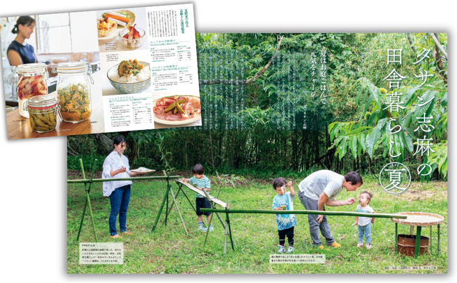 古民家のある静かな里山を舞台にした大好評のタサン志麻さんの季節連載、今号は夏のお庭ごはんがテーマです。裏庭の竹で作った流しそうめんは、たっぷりの薬味と5種類のつけつゆで。自生やおすそ分けしてもらった夏野菜は簡単な常備菜に。バーベキューは手をかけずゆっくり楽しむフランス流。マリネした肉と季節のフルーツを添えたパンケーキのデザートをいただきます。太陽の光を浴びながら元気をチャージする志麻さん一家の暮らしをお届けします。