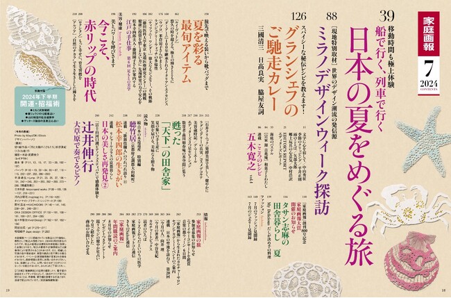 《新しい旅スタイルを提案》列車で船で「日本の夏をめぐる旅」/ミラノデザインウィーク探訪/<連載>タサン志麻/<別冊付録>開運・招福術ほか『家庭画報 7月号』5月31日発売