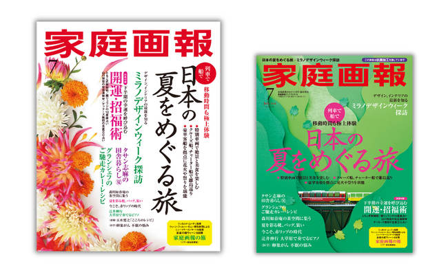 株式会社世界文化社は、『家庭画報 7月号』を5月31日(金)(関西・東海・四国地区は5月30日)に発売しました。「日本の夏をめぐる旅」では、移動時間も極上の体験になる”列車と船”の新たな旅のスタイルを提案。また、現地の特別取材でお届けする「ミラノデザインウィーク探訪」では、”世界のデザインの都”であるミラノを大解剖し、デザインの新潮流に迫ります。さらに、「タサン志麻の田舎暮らし 夏」や「グランシェフのご馳走カレー」では、今すぐ実践したくなる夏レシピを公開。下半期の運勢と幸運を呼び込む術は、別冊付録「開運・招福術」をご覧ください。”この夏をワクワクさせる特集”満載でお届けです。