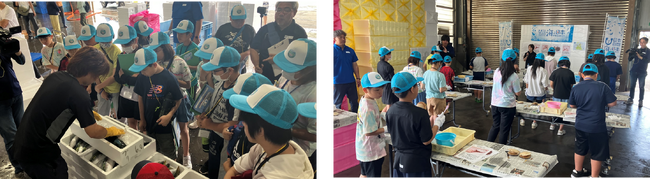 脇野沢漁港見学の後半では陸奥湾で水揚げされたホタテの「ほやき(殻むき)」作業を体験。家で食べるホタテがどのように捌かれているのか、実際に、自分の手で体験し確かめていました。
