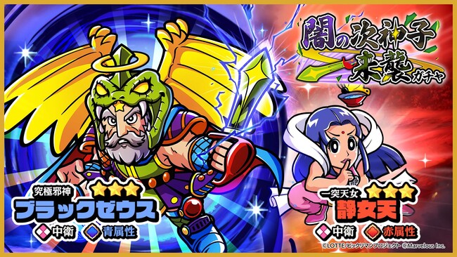 新たな☆3キャラクター[究極邪神]ブラックゼウス、[一突天女]静女天が登場する「闇の次神子来襲ガチャ」を開始いたしました。