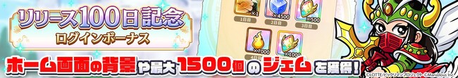 また、リリース100日キャンペーンにて、最大1500ジェムを獲得できるお得なログインボーナスなどを開催しております。