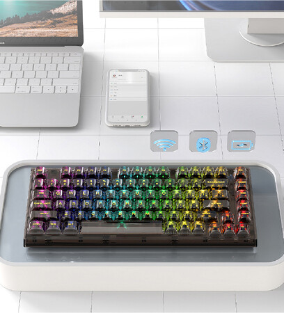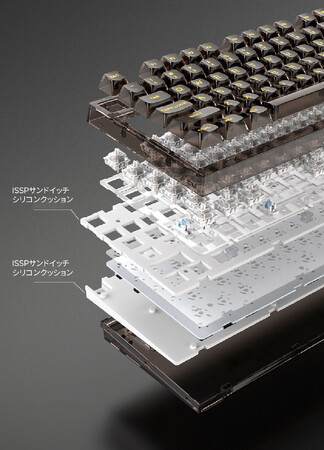 「Gespo-Pene」(ゲスポ・ペーネ)は高透明度のPC素材、フルキーホットプラグ、ダブルISSP消音構造、そして3種類の接続モードを持つキーボードです。