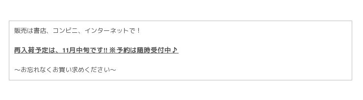11月中旬には書店、コンビニをはじめ、インターネット店舗にも入荷される予定ですので、お早めにお買い求めください!
