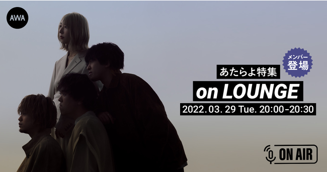 AWA株式会社(本社:東京都港区、代表取締役CEO:冨樫晃己)が運営する、サブスクリプション型(定額制)音楽ストリーミングサービス「AWA(アワ)」は、2022年3月29日(火) 20:00〜20:30の30分間に渡り、オンライン空間「LOUNGE(ラウンジ)」で、次世代バンドあたらよが、音声とチャットで参加する、ラジオ配信ラウンジを開催いたします。