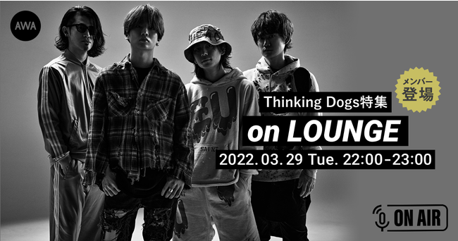 AWA株式会社(本社:東京都港区、代表取締役CEO:冨樫晃己)が運営する、サブスクリプション型(定額制)音楽ストリーミングサービス「AWA(アワ)」は、2022年3月29日(火) 22:00〜23:00の1時間に渡り、オンライン空間「LOUNGE(ラウンジ)」で、Thinking Dogsが音声で参加する、ラジオ配信ラウンジを開催いたします。