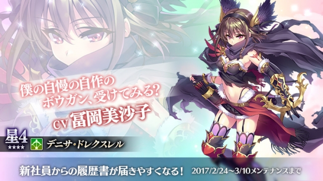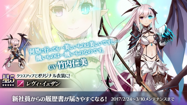 ☆5新キャラクターを初めとする3人の新社員が登場!ローニン系☆5の社員「レヴィ・イェザン」、アーチャー系☆4の「デニサ・ドレクスレル」、ソルジャー系☆3の「リータ・メアッツァ」、3人の社員が新たに登場します。