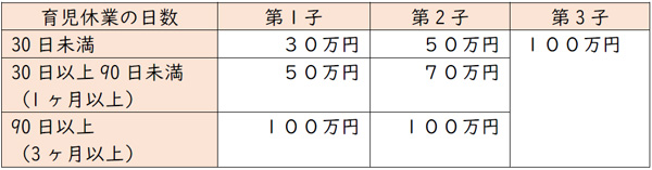 男性の育児休業(産後パパ育休含む)取得の合計日数に応じて支給