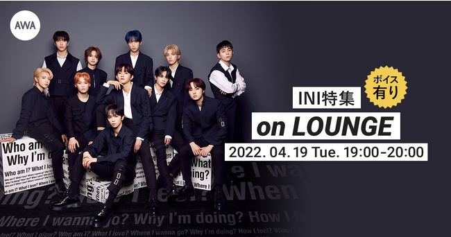 AWA株式会社(本社:東京都港区、代表取締役CEO:冨樫晃己)が運営する、サブスクリプション型(定額制)音楽ストリーミングサービス「AWA(アワ)」は、2022年4月19日(火) 19:00〜20:00の1時間に渡り、オンライン空間「LOUNGE(ラウンジ)」で、INIの特集イベントを開催いたします。