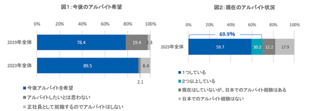 「アルバイトしたいとは思わない」はわずか2.1%。「宿泊施設のスタッフ」「ホールスタッフ(飲食店)」等が希望上位に。「日本で働くことへの興味」きっかけが増加