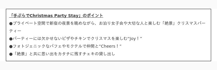 【新宿プリンスホテル】あなただけの「絶景」クリスマスを思い出とカタチに宿泊プラン「手ぶらでChristmas Party Stay」を販売