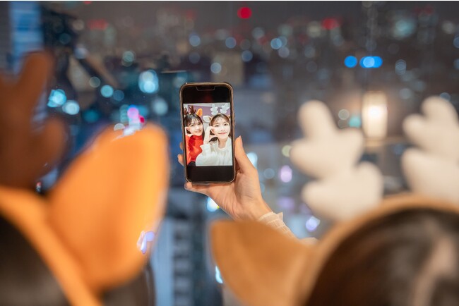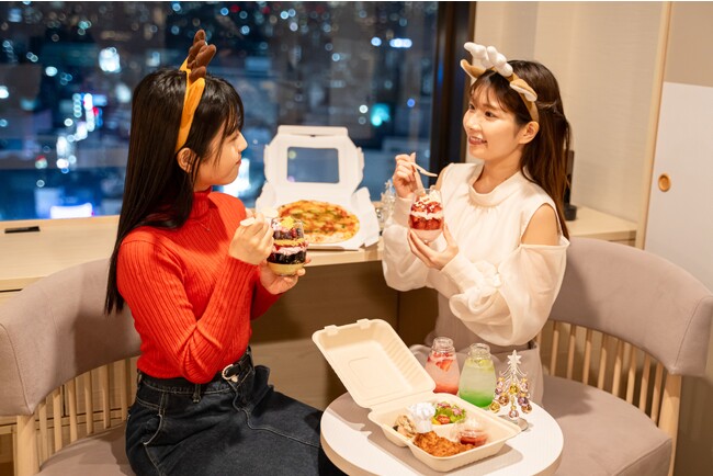 客室の扉を開くとそこには新宿の夜景が広がっており、「絶景」をふたりじめしているような気分をご堪能いただけます。周りの目を気にすることなく、プライベート空間でのクリスマスパーティーをお楽しみください。また、「絶景」の思い出を切り取ってお持ち帰りいただけるようチェキをご用意。高層フロアから手に取るような視点で望む夜景を背景に、フォトジェニックなパフェやモクテルと共に、仲間との楽しい時間を思い出に残すことができます。