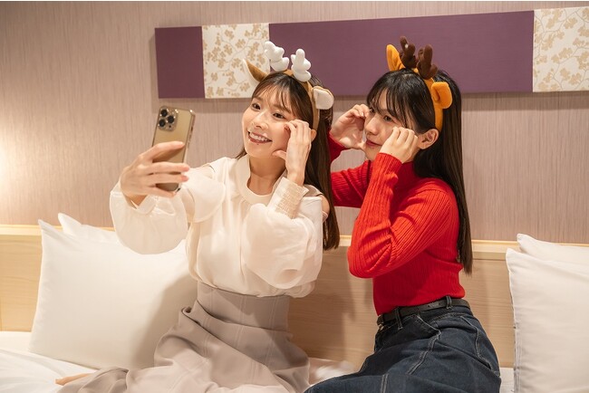 客室内にはサンタ帽や韓国風のクリスマスカチューシャをご用意。