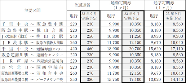 *通勤定期券、通学定期券、通学学期定期券(阪急スクールパス)については、改定した基準運賃に基づき算定します。