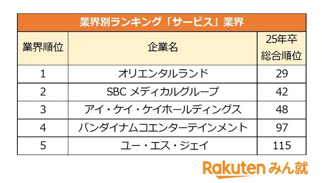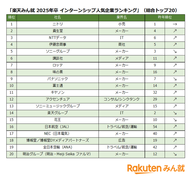楽天、「楽天みん就 2025年卒 インターンシップ人気企業ランキング」を発表