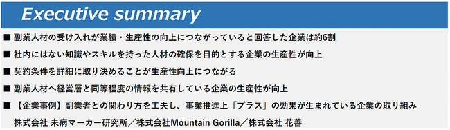 「兼業・副業に関する動向調査 2022」を追加分析 兼業・副業人材の受け入れと企業の生産性への影響を分析