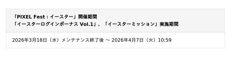 期間限定イベント「PIXEL Fest:イースター」