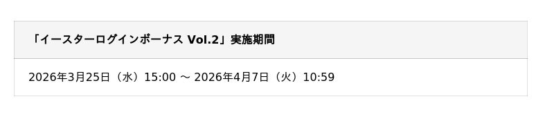「PIXEL Fest」はさまざまなイベントやステージを遊んでイベント専用の「PFポイント」を集め、豪華報酬を獲得できるイベントです。本日より開催される「PIXEL Fest:イースター」では、「期間限定ガチャチケット(フラワーラビット ミス・バニー EX)」をはじめ、キャラクター育成素材やプロフィールアイテムなどを獲得できます。