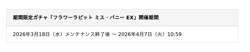 ■期間限定ガチャに新キャラクター「フラワーラビット ミス・バニー EX」が登場!