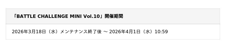■期間限定ガチャチケットなどがもらえる「BATTLE CHALLENGE MINI Vol.10」開催!