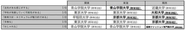 関東・東海・関西エリアの「大学のイメージ」ランキング