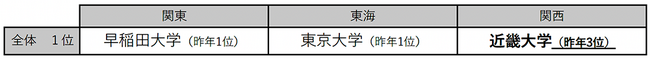 ■関東エリアでは全体で「早稲田大学」が3年連続で1位となり、「明治大学」が2位となった。