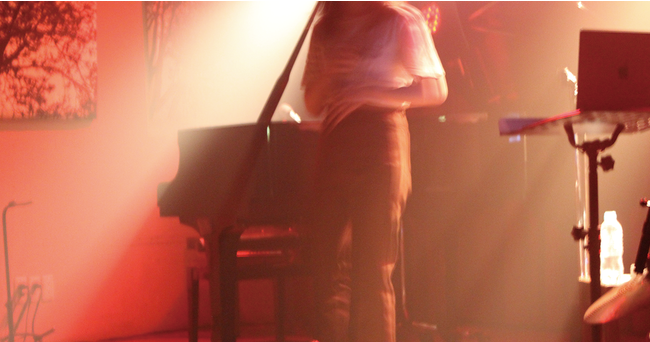4番手は、パーカッションとの2人編成で音の厚みが増したライブを披露したオルタナティブ・シンガーソングライター“美根”。気持ちが前向きになれる楽曲「零れる光」で幕を開け、ピアノに変えて劣等感を強さにできる場所を探し出すための曲「本当は人魚」を披露。本イベント3回目の登場となる“美根”は、“たいやきは頭から食べるか尻尾から食べるか”など、ウィットに富んだ軽快なトークを展開した。近日ニューアレンジで配信されるというバラードソング「バスタブ・タイムワープ」を歌唱し、最後は中毒性のあるサウンドと独特の世界観を感じさせる「さよなら起承転結」で締めくくり、全曲フルバージョンで4曲を披露。
