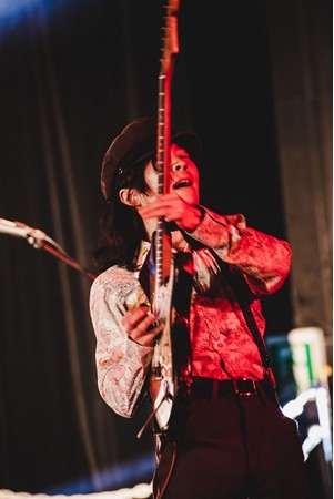 1曲目を終えて4人はそれぞれが名前を名乗って短いMCへ。曲中の緊張感とは裏腹にリラックスしたテンションの4人は、ロクが中盤のために用意していたトークの合図を葛城が先に振ってしまうといったトラブルなども笑いに変えながら再びセットリストへ。続く「おままごと」「Dive」はともにブルースロック。ロクはジャニス・ジョップリンも彷彿とさせる堂々たるヴォーカルワークを聴かせるが、バンドの真髄を感じさせるのは同道と葛城。ヴォーカルの影を縫うようにフレーズをぶつけあう攻撃的なアンサンブルがPhatSlimNevaehとは何者かを明らかにしていく。スティーヴィー・レイ・ヴォーンやジミ・ヘンドリックスに比される同道のプレイがリードしたかと思うと、すぐさまボトムに響くのは葛城の手数の多いテクニカルなプレイ。主旋律を尊重しながら、時にはそこに踏み込むことでさらなるグルーヴを生み出す。冒頭3曲にして4人は肉体的なアンサンブルによってバンドのプロフィールを言葉よりも明らかにプレゼンテーションしてみせた。