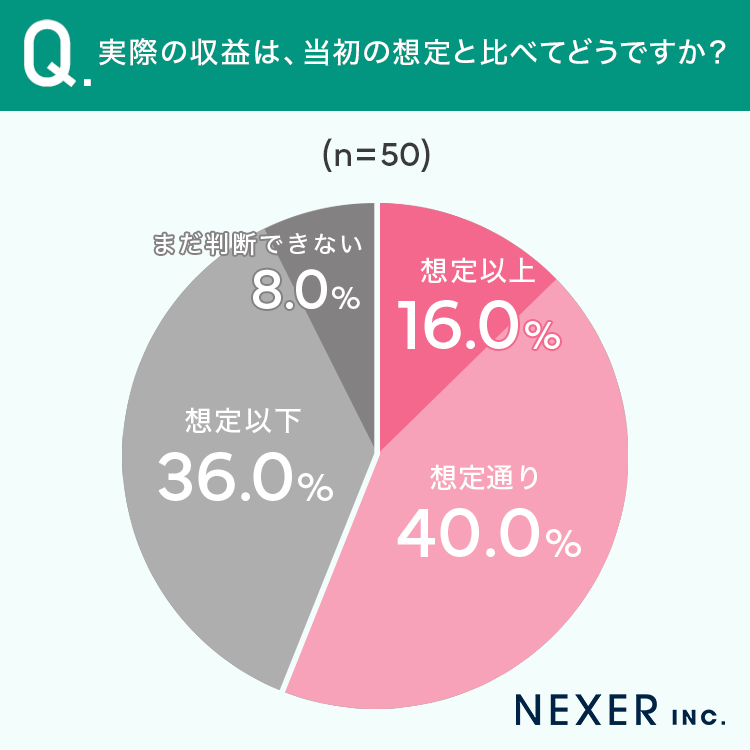 ■収益は「想定通り」が40%、「想定以下」も36%