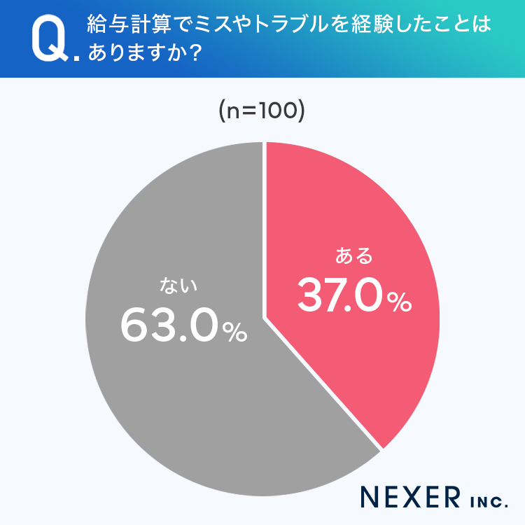 続いて、給与計算でミスやトラブルを経験したことがあるかどうかを質問しました。
