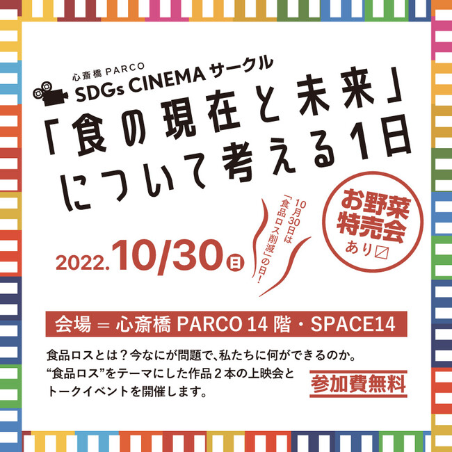 10月30日は「食品ロス削減の日」!心斎橋PARCO SDGsCINEMAサークル特別イベント「『食の現在と未来』について考える1日」を10月30日に開催!