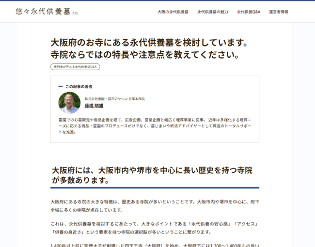 お墓探しの「ライフドット」×「株式会社霊園・墓石のヤシロ」による“永代供養墓”の専門メディア『悠々永代供養墓 〜大阪〜』を公開