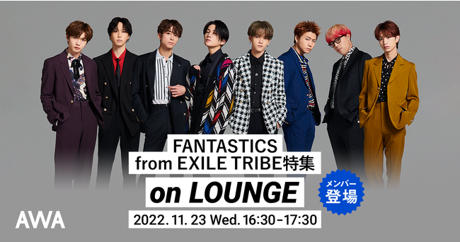 AWA株式会社(本社:東京都港区、代表取締役CEO:冨樫晃己)が運営する、サブスクリプション型(定額制)音楽ストリーミングサービス「AWA(アワ)」は、2022年11月23日(水) 16:30〜17:30の1時間に渡り、無料で誰でも参加できるオンライン空間「ラウンジ」で、FANTASTICS from EXILE TRIBEのメンバーが登場するイベントを開催いたします。