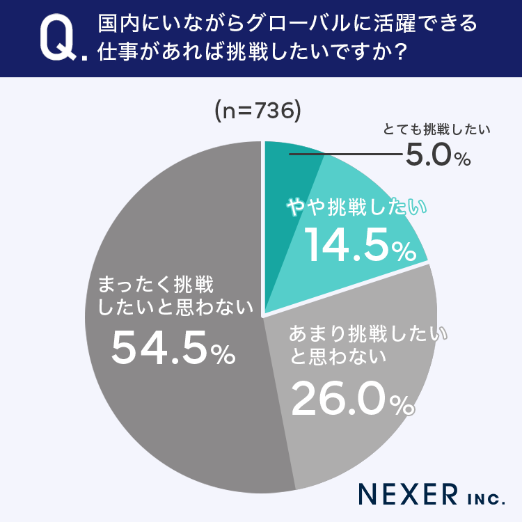 最後に、国内にいながらグローバルに活躍できる仕事があれば挑戦したいかどうかを聞いてみました。