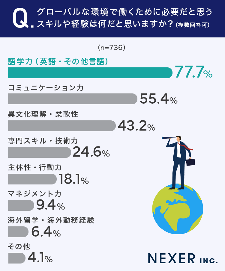 また、グローバルな環境で働くことへの興味関心や、必要だと考えられているスキルとはどのようなものでしょうか。
