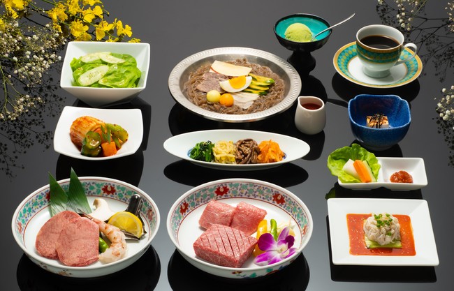 肩ロースにすだれ状の切り込みを入れた 「すだれ肩ロース」を中心にした銀座三越オリジナルコース 。期間中に限り「チャプチェ」をお付けいたします。