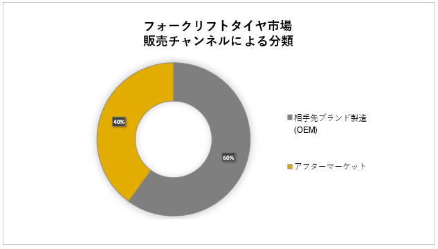 質問: 販売チャネルに関して、フォークリフトタイヤ市場で最大のシェアを保持すると予想されるサブカテゴリはどれですか?