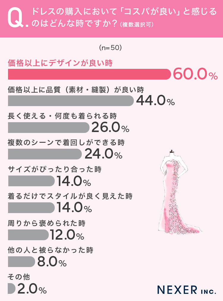 続いて、ドレスを買って「コスパが良い」と感じるのはどんなときかを聞いてみました。