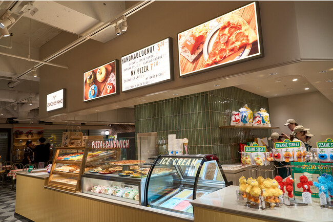 特に店内奥、セサミストリートに登場する食料品や日用品を販売している店舗「HOOPER’S STORE(フーパーズストア)」と外のテーブルセットは再現性も高く、フォトスポットとしてもおすすめ。