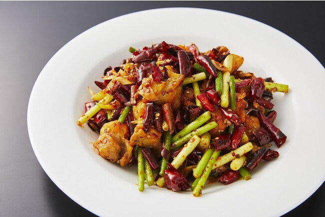鶏肉の旨味と唐辛子のインパクトが絶妙にマッチする四川料理の代表的メニュー。辛さの奥に広がるふくよかな味わいが人々の下を虜にする魅惑的な逸品。