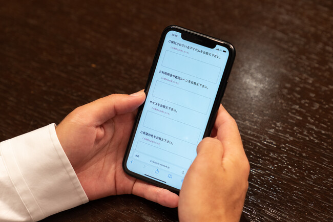 ・お客さまに好適なサービスをご提案するために、ご予約時に着用シーンやスタイリングに関するお悩みなど、アンケートに回答。