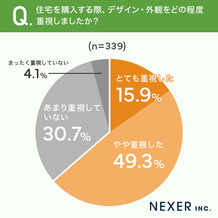 まず、住宅を購入するときにデザインや外観をどの程度重視したかを聞いてみました。