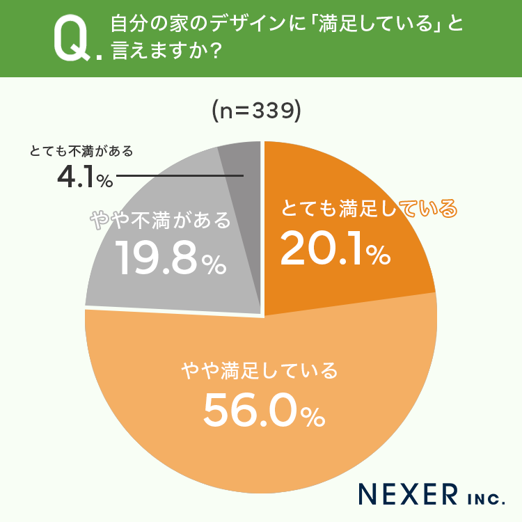 ■76.1%が自分の家のデザインに「満足」、一方で23.9%は「不満あり」
