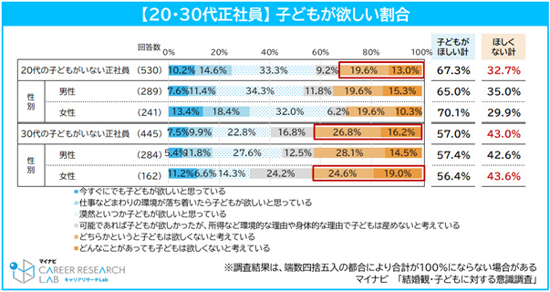 ◆20代正社員の32.7%が「子どもは欲しくない」。30代では男女ともに子どもが欲しくない割合が4割超