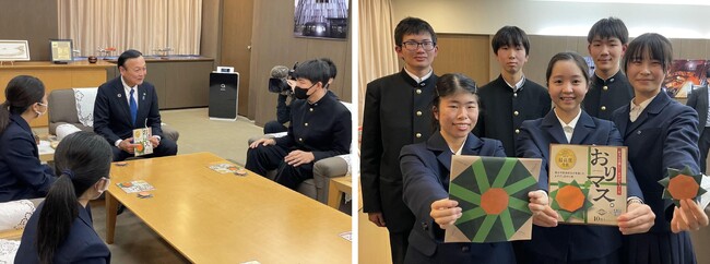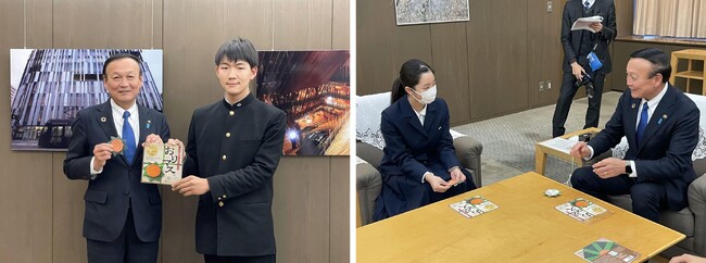 富山中部高校の生徒が考案 ますずし折り紙「おりマス。」が商品化!富山市長を表敬訪問し、発売を報告しました
