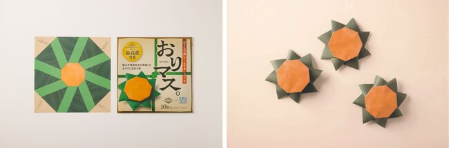 ますずし折り紙「おりマス。」は、富山駅や日本橋とやま館、富山市ガラス美術館、富山ます寿し協同組合の加盟店などで12月22日(金)から販売されています。