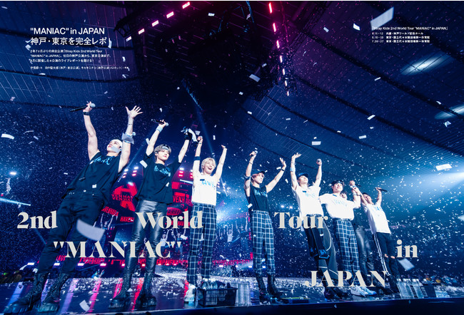 今号では、大型インターナショナルフェスの完全復活や、世界の音楽シーンを賑わすアーティストの来日公演が次々と決定する“来日ラッシュ!”の中、表紙を飾るStray Kids、2年7ヶ月ぶりの来日を伝えます。米・Billboard 200で1位を獲得するなど、世界的な人気を誇る彼らですが、日本の音楽誌としては初となる対面取材・撮影が実現。これまで、作詞作曲プロデュースを自ら手がける彼らのオリジナリティ際立つ音楽性を伝えてきましたが、今回は、6公演のチケットが即完売し、プレミアライブとなった日本ツアーを中心に、世界11都市21公演を巡る大規模ワールドツアー「Stray Kids 2nd World Tour "MANIAC"」をクローズアップ。6月の神戸・東京公演の完全レポートはもちろん、巻頭では、久しぶりのワールドツアーにかけるエモーショナルな思いやライブ制作にまつわるストーリー、神戸公演のアフタートークなど、ライブエンタテインメント切り口の貴重なメンバーインタビューを約2万字にわたって収録。