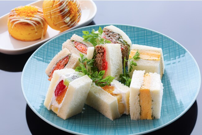 下段にはボリューム満点の自家製「オリジナルサンドウィッチ」に、マンゴーの豊かな風味とサクサクの食感が楽しめる「マンゴースコーン」を盛り付け、シェフのこだわりが詰め込まれたアフタヌーンティーに仕立てました。