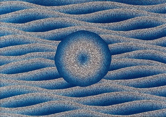 2009年の交通事故による高次脳機能障害と記憶喪失を経て、事故の2日後から緻密な点描画を描き始めたGOMA。世界 屈指のディジュリドゥ奏者であり、事故前は絵画とほとんど縁がなかったというGOMAが描き出すのは、「意識を消失したあとに見た景色」である。