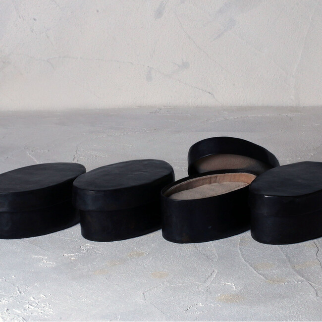 ありのままの素材を大切に考えるからこそ、この先の循環を考えたモノづくりを心掛ける<ロウジェ>。リサイクルの鉄を使ったジュエリーボックスや、リファインメタル(*)を使った商品の取り組みも行っています。